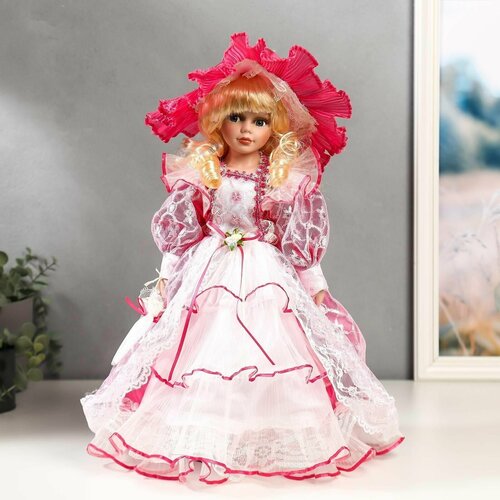 Кукла коллекционная керамика Леди Виктория в розовом платье 40 см