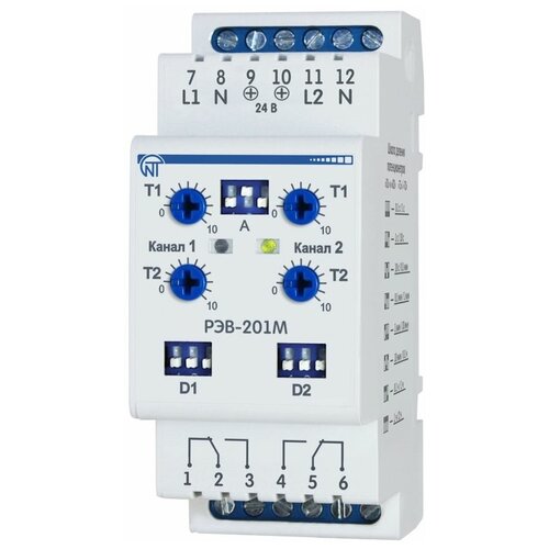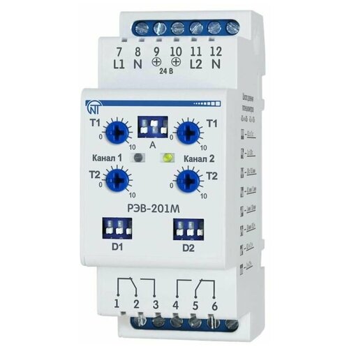 Реле времени РЭВ-201М 2 канала 0сек-10час dip-переключение выбора режимов крепление на DIN-рейку 3425601201 Новатек-Электро