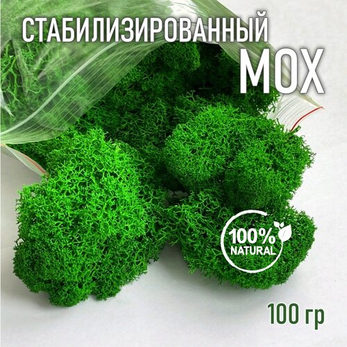 Мох стабилизированный 100 гр цвет зеленый, Ягель мох для декора moss