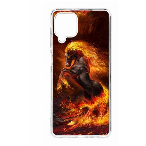 Чехол на Samsung Galaxy A12 Kruche Print Конь огонь, защитный силиконовый бампер с рисунком, противоударный, пластиковый кейс, накладка с принтом