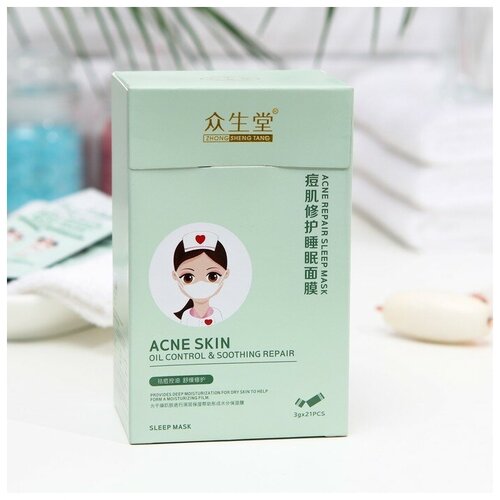 Маска для лица ночная с травами, против прыщей, угрей и акне, 21 шт. по 3 г