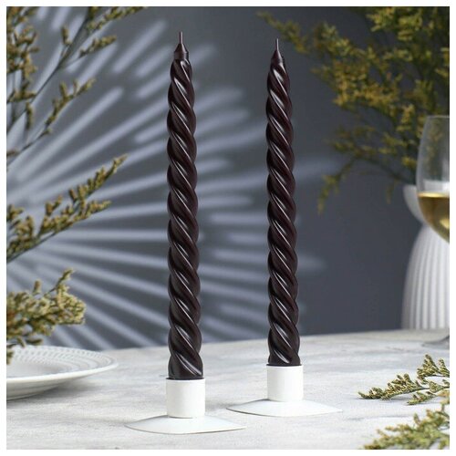 Набор свечей витых, 2,3х 24,5 см, 5 ч, 50 г, 2 штуки, чёрный
