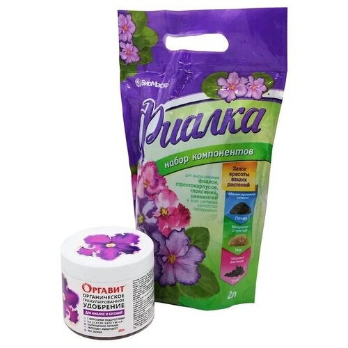 БиоМастер субстрат Фиалка набор компонентов 2 л и Удобрение Оргавит "Для фиалок и бегоний" 380 мл