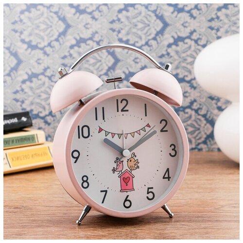 Будильник "Квигли", с подсветкой, плавный ход, 16 х 11 см, розовый