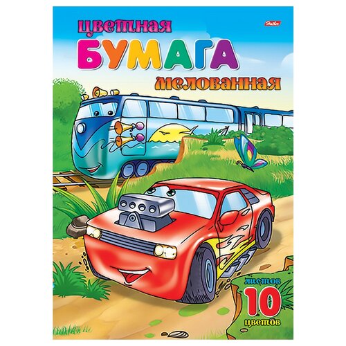 Цветная бумага А4, Хатбер Тачки, 10л,10цв, мелованная, в папке