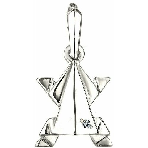 Серебряная подвеска оригами лягушка с натуральным бриллиантом, серебро 925 пробы