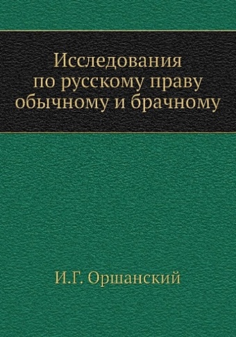 Оршанский И.Г. Исследования по русскому праву обычному и брачному