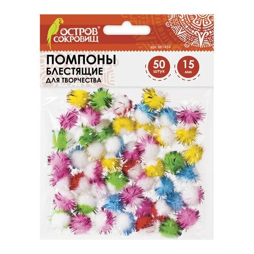 Остров сокровищ Помпоны для творчества, многоцветныее, блестящие, 6 цветов, 15 мм, 12 шт.
