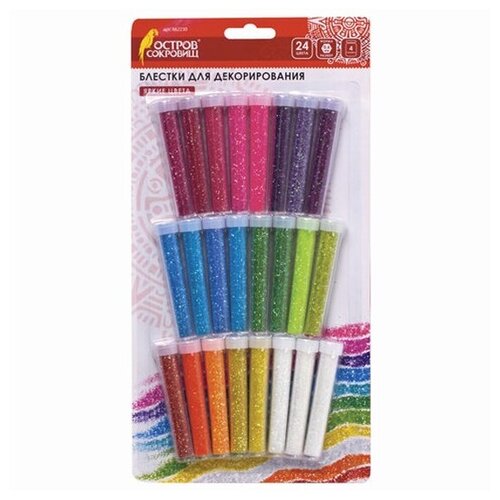 Блестки для декора (глиттер) остров сокровищ, набор 24 цвета по 4 грамма, блистер, 662230