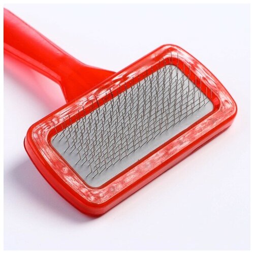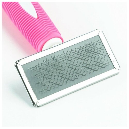 Пуходерка без капель с рифленой резиновой ручкой 9 х 15 см, бело-розовая
