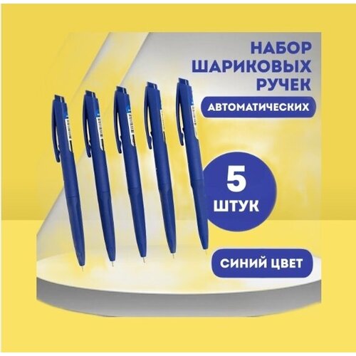 Набор шариковых ручек автоматических, синий цвет, 5 шт.
