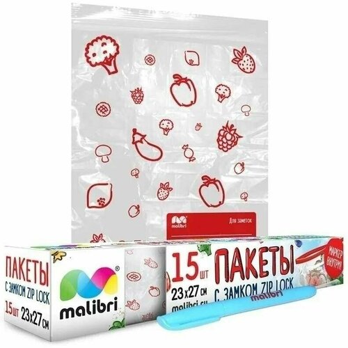 Malibri Пакеты для заморозки и хранения с Zip-Lock замком и маркером 23х27см, 15 шт в упаковке