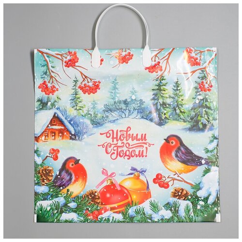 Пакет "Птичья трель", полиэтиленовый с пластиковой ручкой, 37 х 34см, 80 мкм (10 шт.)