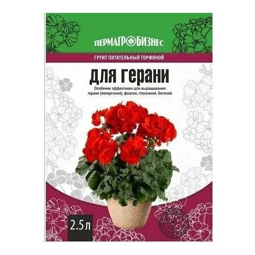 Грунт для Герани, (пеларгонии), фиалок, глоксиний, бегоний 2,5 л. "Пермагробизнес"