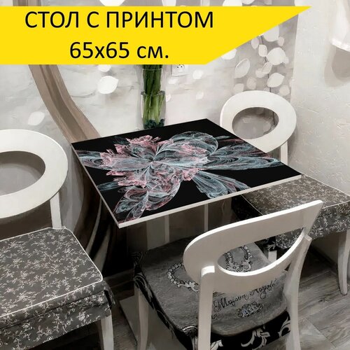 Стол "Фрактал, розовый, аква", 65x65 см. Кухонный, квадратный, с принтом.