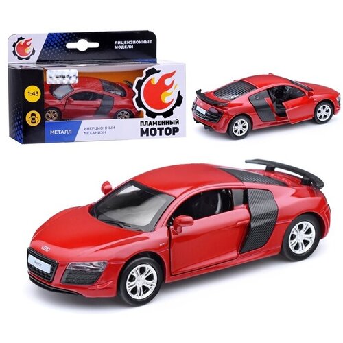 Машина металлическая Пламенный мотор Audi R8 GT, 12 см, масштаб 1:43, красная, открываются двери (870221)