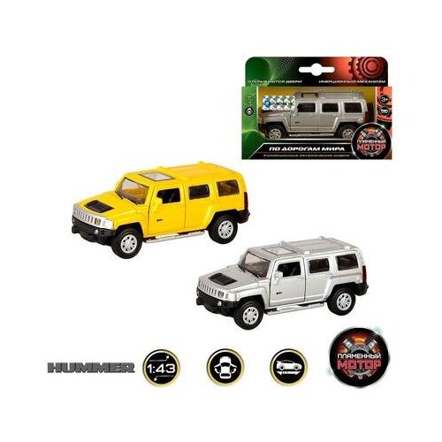 Машина металлическая 1:43 Hummer H3, открывающиеся двери, желтый, 12см Пламенный мотор 870131