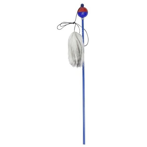 Дразнилка-удочка для кошек "Зооник" "Помпон с перьями", 50 см, натуральный мех, микс