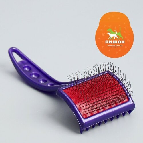 Щётка-пуходерка средняя для вычесывания длинношерстных животных, мягкая без капель, основание 6,2 х 4,2 см, микс