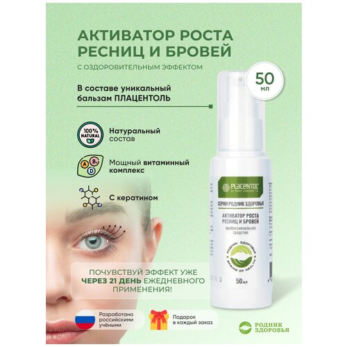Родник Здоровья Активатор роста ресниц и бровей натуральный Плацентоль 50 мл