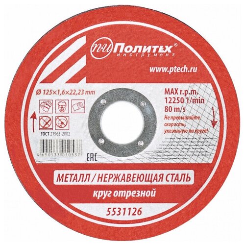 Круг отрезной по металлу (125х1.6х22 мм) Политех 5531126