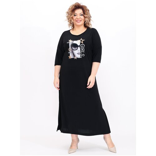 Платье Полное счастье, в классическом стиле, полуприлегающее, макси, размер 56, черный