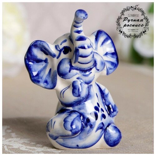 Сувенир "Слон Ксюша", фарфор, гжель, кобальт