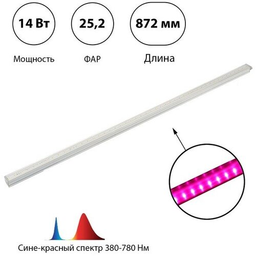 Фитосветильник светодиодный, 14 Вт, 872 мм, IP20, сине-красный спектр, фиолетовый, FITO-14W-Т5-N, «ЭРА»