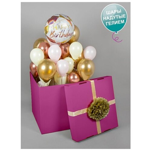 Воздушные шары надутые гелием в коробке "Мраморное золото-4"