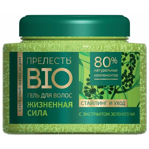 Прелесть bio гель для волос Жизненная Сила с экстрактом зеленого чая, сильная фиксация, 250 мл