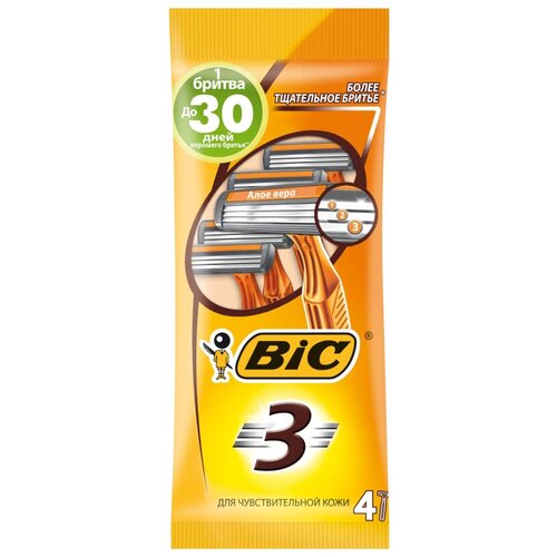Бритва одноразовая Муж Бик Сенс 3 лезв увл.полоска П4шт/уп 8729022 оранж