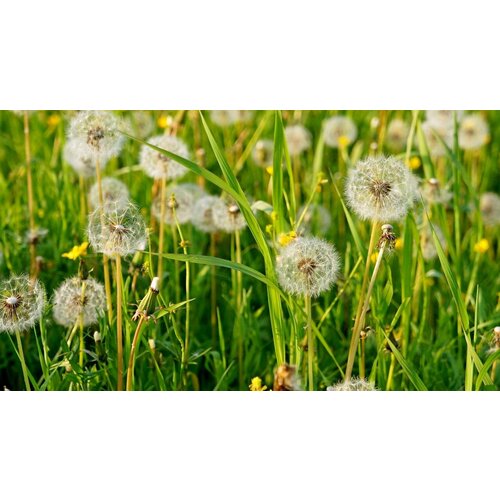 Картина на холсте 30x30 LinxOne "Луг одуванчики пушистый трава лето" интерьер для дома / декор на стену / дизайн
