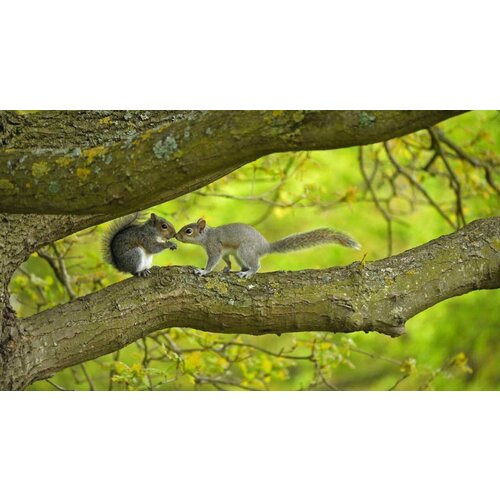 Картина на холсте 40x50 LinxOne "Белки природа хвост ветки" интерьер для дома / декор на стену / дизайн