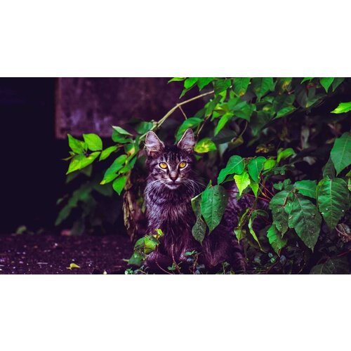 Постер на экокоже 60x60 LinxOne "Животные Кот Сидит Листва Пушистый" интерьер для дома / декор на стену / дизайн