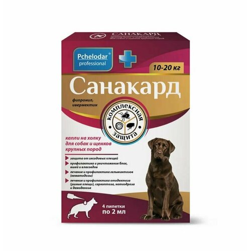 Пчелодар раствор от блох и клещей Санакард для собак и щенков крупных пород для собак от 10 до 20 кг 4 шт. в уп., 1 уп.