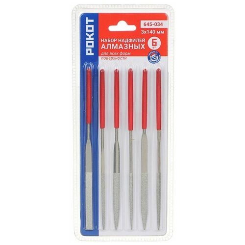 Набор надфилей алмазных рокот 6шт, размер 3x140мм, блистер