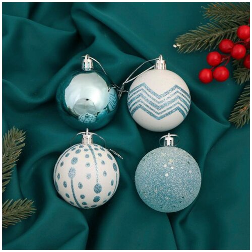 Набор новогодних елочных шаров, набор украшений для елки, пластик d 6 см, 4 шт "Рогнеда" бело голубой