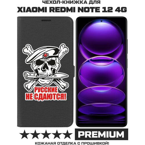 Чехол-книжка Krutoff Eco Book для Xiaomi Redmi Note 12 4G Русские не сдаются (черный)
