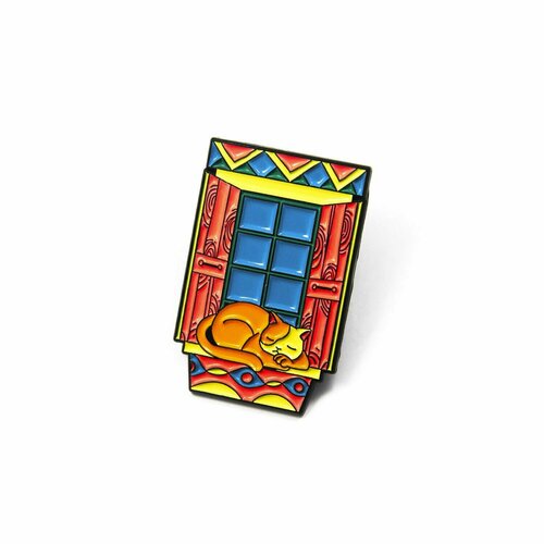 Значок Кошка на окошке, эмаль, подарочная упаковка, мультиколор