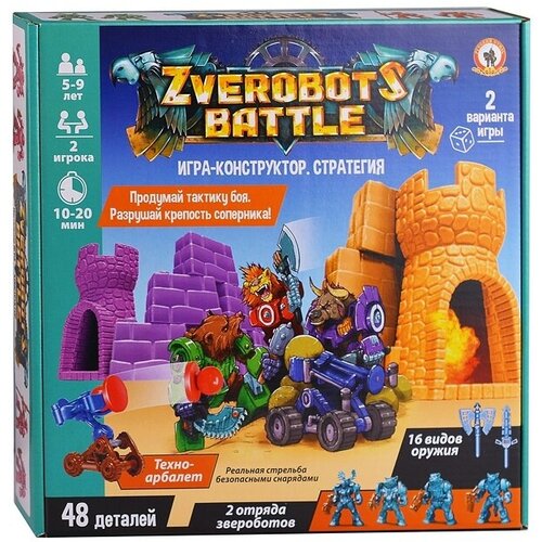 Настольная игра Русский стиль Zverobots battle, 48 деталей, 2 игрока, в коробке (09318)