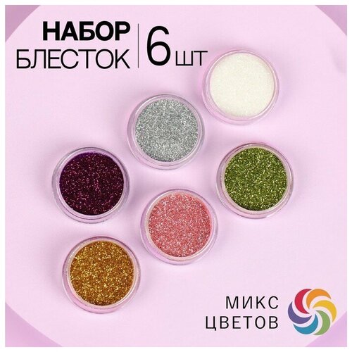 Queen fair Блёстки для декора, мелкие, 6 баночек, цвет микс