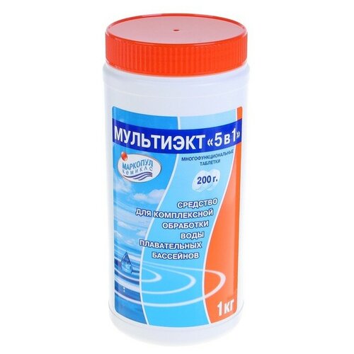 Маркопул Кемиклс Дезинфицирующее средство "Мультиэкт 5 в 1", для воды в бассейне, комплексный препарат, таблетки 200 г, 1 кг
