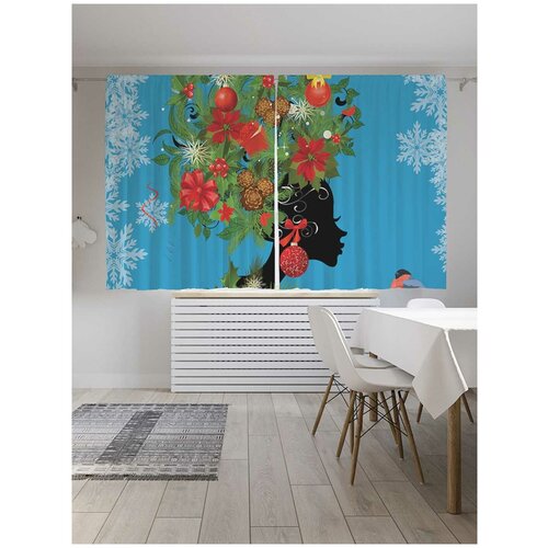Классические шторы JoyArty "Рождественская прическа и снегирь", серия Oxford DeLux, 2 полотна 145x180 см