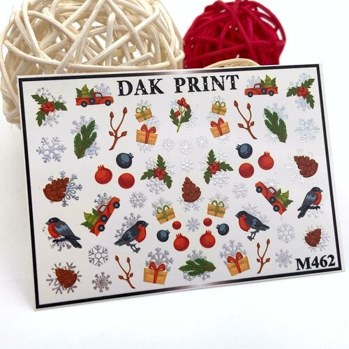 Металлизированные cлайдеры для маникюра (водные наклейки) для дизайна ногтей "Новогодний сет: снегирь, подарки, шишки"