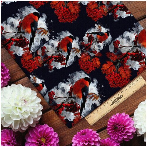Ткань габардин снегирь с рябиной (Габардин)