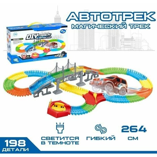 Автотрек "Магический Трек", гибкий, светится в темноте, 198 деталей, поворот