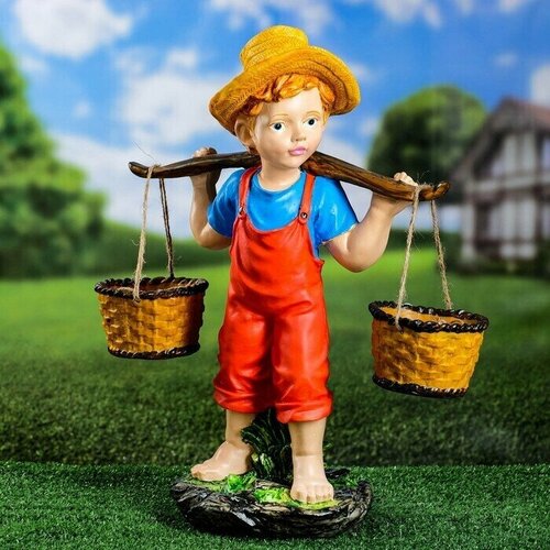 Садовая фигура "Мальчик с коромыслом" 48х40х19см