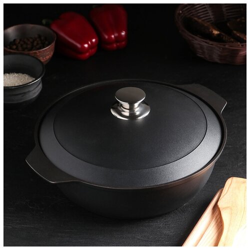Жаровня "Традиция", 3 л, d 29 см, алюминиевая крышка, антипригарное покрытие, цвет чёрный