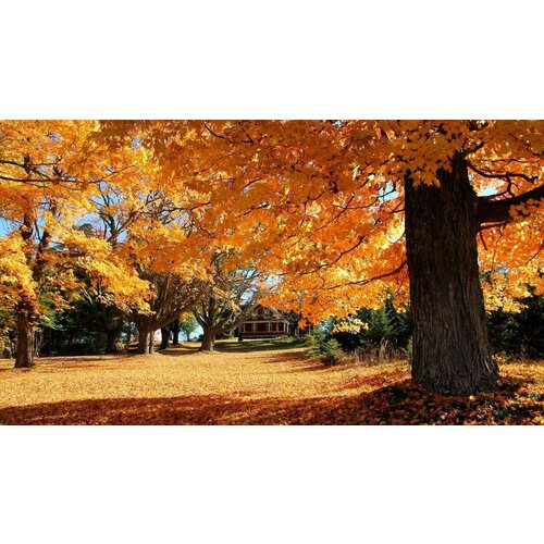 Картина на холсте 60x100 LinxOne "Двор склон дом осень листья" интерьер для дома / декор на стену / дизайн