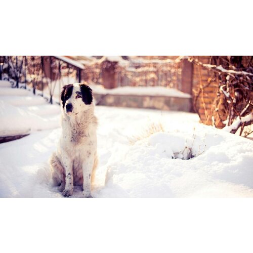 Постер на экокоже 60x90 LinxOne "Природа двор зима собака снег" интерьер для дома / декор на стену / дизайн